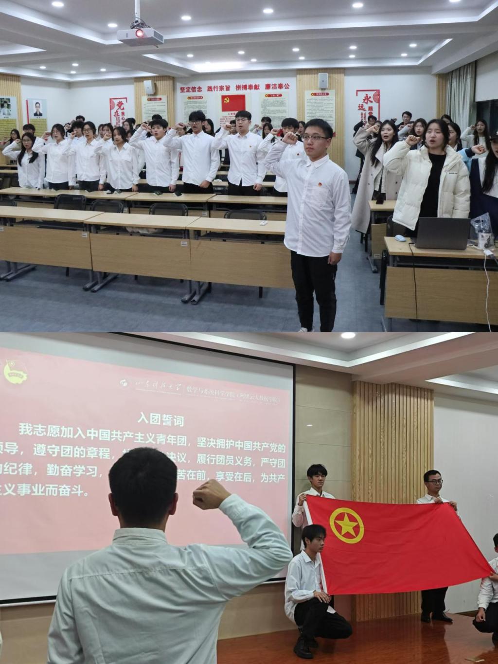 统计专业2023级1班邢晓凤作为新团员代表发言,她表示非常荣幸能够加入中国共产主义青年团,并号召新团员在今后的日子里严于律己,勤奋学习,用铿锵步履践行“强国有我,请党放心”的铮铮誓言。统计专业2022级2班杨林涵作为优秀团员代表发言,她鼓励新团员们要接过时代赋予的“接力棒”,勇当时代“主角”,追随信仰之光、扛起历史之责、不负时代之望,奋力书写为中国式现代化挺膺担当的青春篇章。