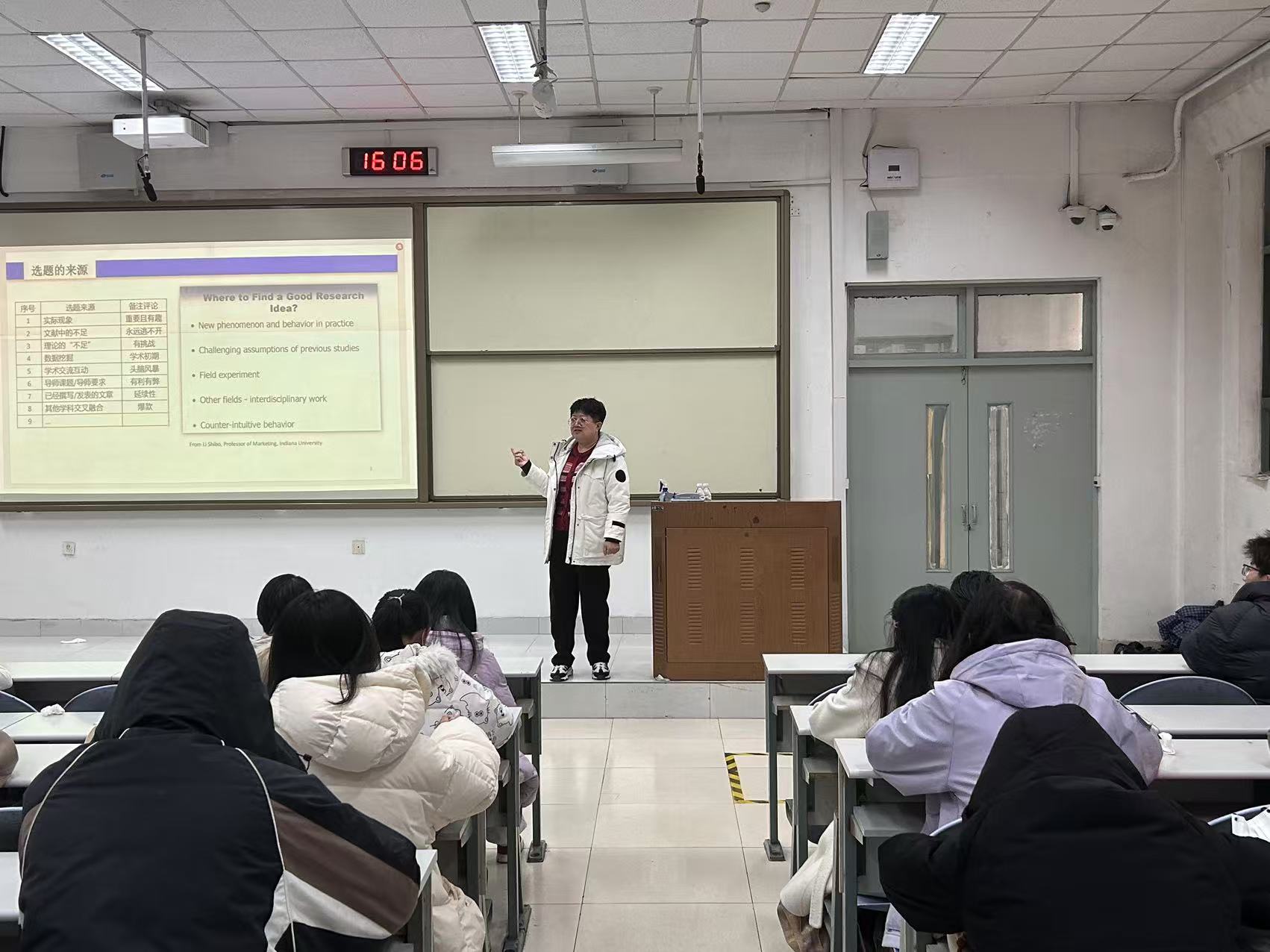 在 J1-121 教室举办了市场调查与分析大赛经验分享会。此次活动特别邀请到统计系邓立凤老师担任主讲嘉宾。
