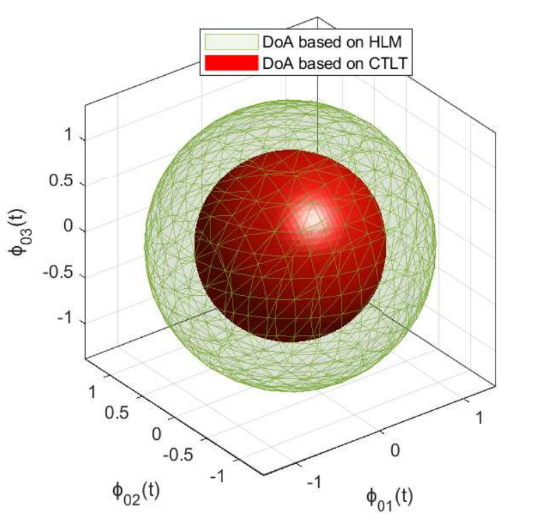 连续Lyapunov泛函和混合Lyapunov泛函下的吸引域对比图