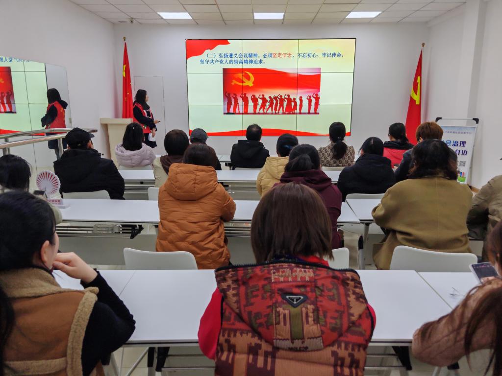 活动伊始,居民有序完成签到并入场落座。活动现场播放《长征》《遵义会议》等影像片段,通过动态画面再现转折之战的恢弘场景,为观众构建起具象化的历史坐标。在核心宣讲环节,主讲人通过时间轴梳理,结合历史影像与决策手稿复刻件,系统阐释会议召开背景、关键决议内容及其对我党军事指挥体系重构的重大意义,引导观众透过历史烟云感受会议精神的内涵与深远影响。