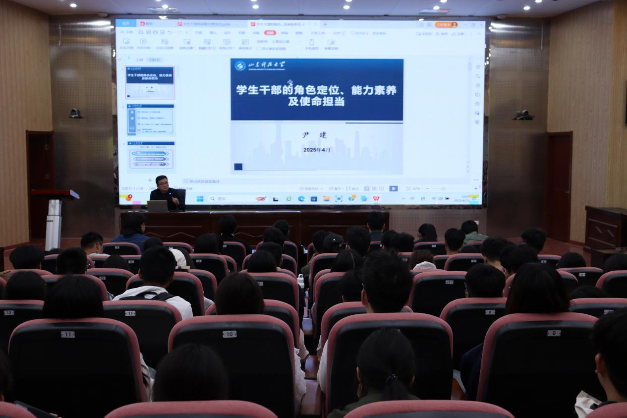 尹建以《学生干部的角色定位、能力素养和使命担当》为题作开班第一讲,他以学生干部的职责与重要性为切入点,围绕角色定位、能力素养、使命担当三个方面对如何当好学生干部、如何做好学生工作展开讲解。他指出,学生干部是大91快活林