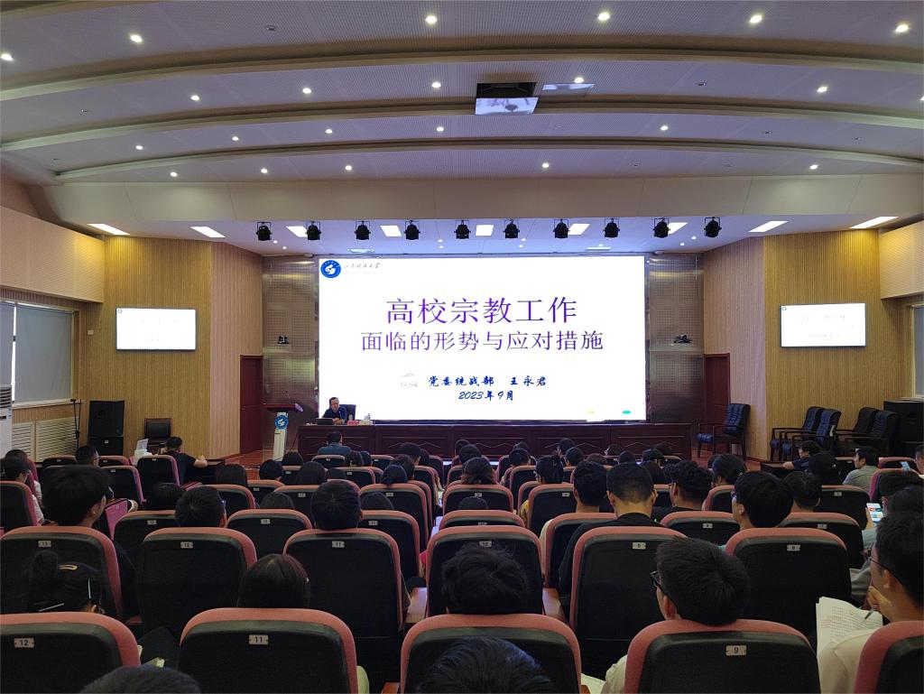 邀请校党委统战部常务副部长王永君作有关宗教工作的报告,报告由学院党委书记徐明磊主持,学院师生党员代表参加了报告会。