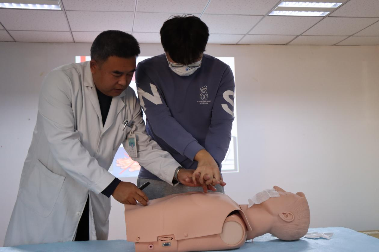 “胳膊与身体垂直,按压深度5—6厘米,频率在每分钟100—120次”“按压30次后检查口腔是否有异物,并打开气道进行人工呼吸”...培训会上,医护人员详细讲解了胸外按压方法、人工呼吸急救要点等内容,志愿者们边听边记,积极互动,不少人还积极走到台前,在教学模型——心肺复苏模拟人身上实践急救操作,并在医护人员指导下“抠动作”“抠细节”。