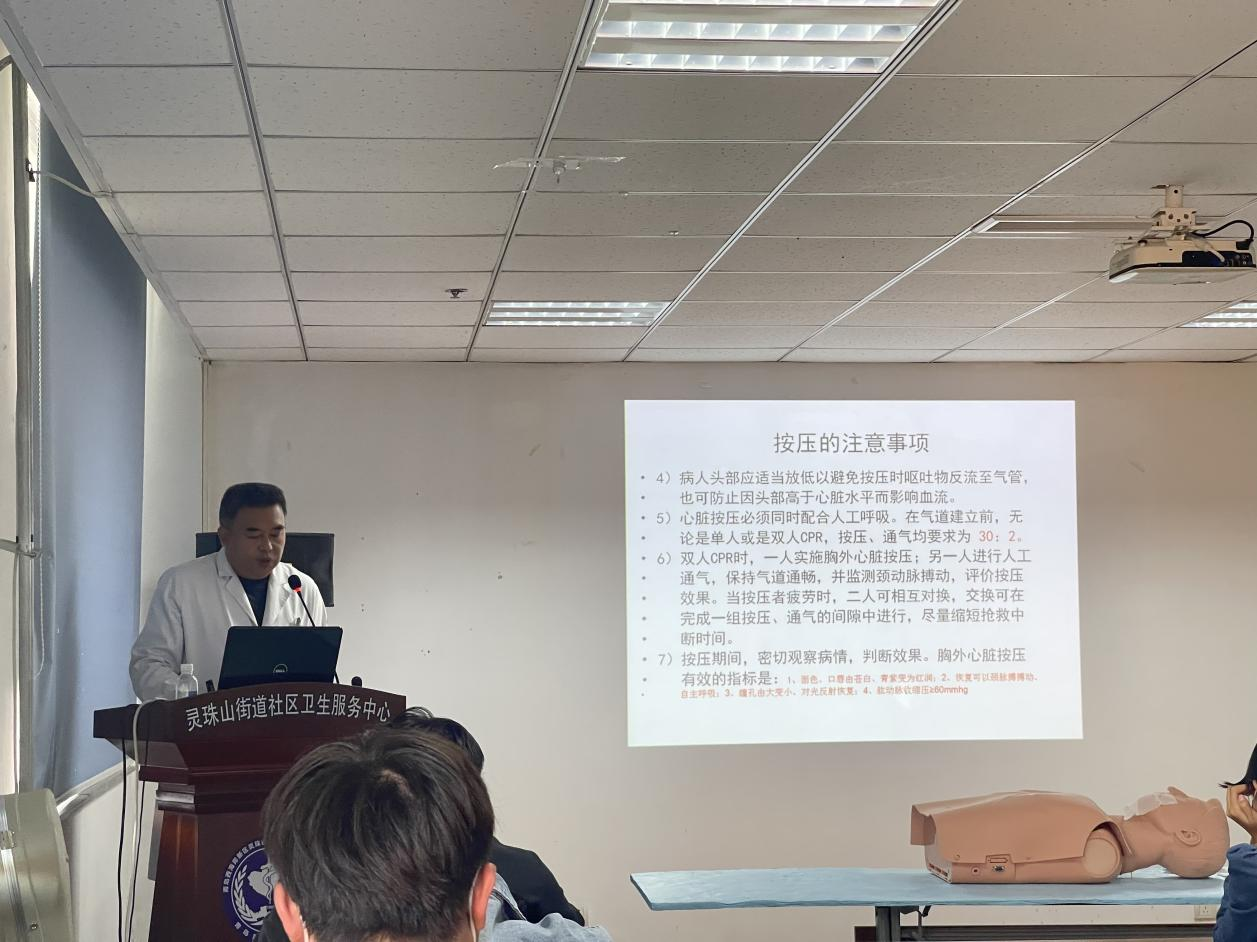 “临床接诊中,经常遇到因身边人手足无措贻误抢救时机的案例,非常可惜。举办这样的培训,就是让更多人了解自救互救知识,在遇到突发情况时能迅速采取正确有效的急救措施”,灵珠山街道卫生服务中心主任医师佟岩松说道。