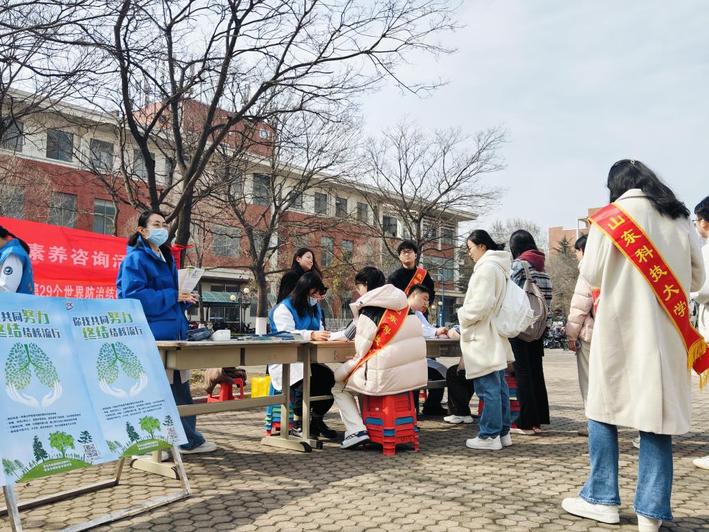 联合灵珠山医院在繁星广场举办健康义诊校园行活动,为我校300余名师生提供了健康知识宣讲和义诊服务。
